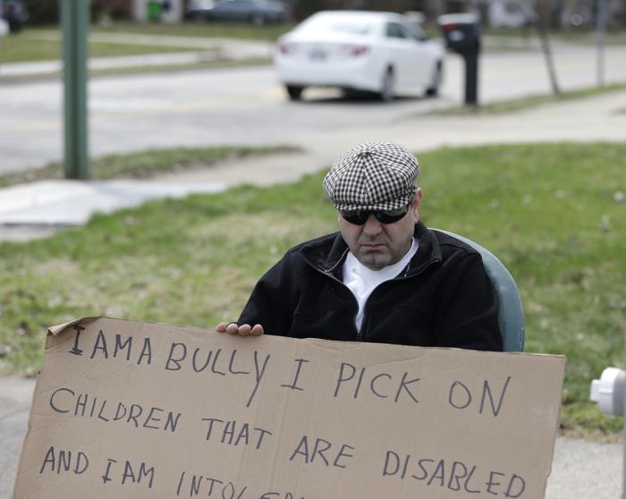 After a man in Ohio pleaded guilty to a misdemeanor charge for bullying children with developmental disabilities, he received an interesting sentence. Edmond Aviv, 62, was ordered by a judge to sit at a busy intersection while holding a sign that read “I AM A BULLY! I pick on children that are disabled, and I am intolerant of those that are different from myself. My actions do not reflect an appreciation for the diverse South Euclid community that I live in.”
