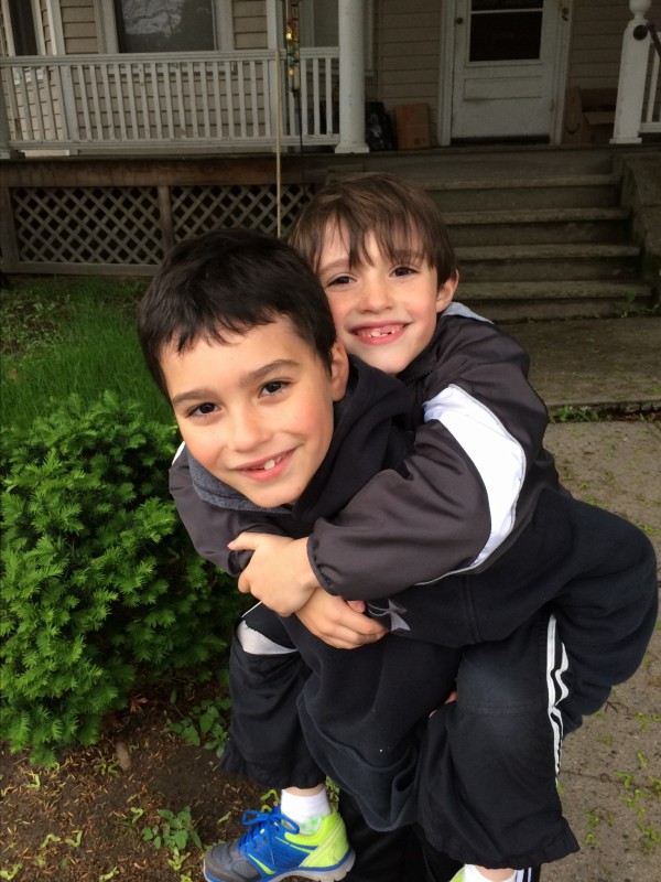 Boys goofing around before dinner